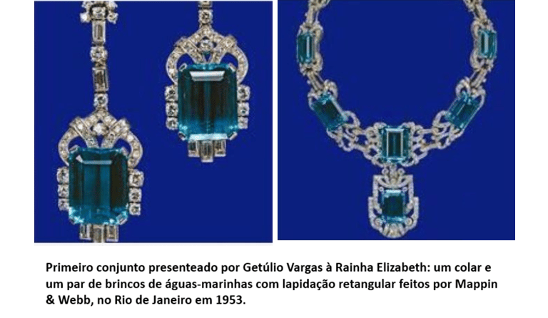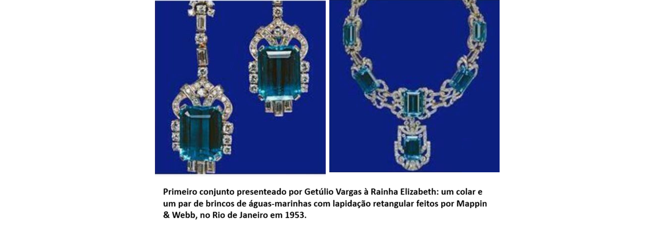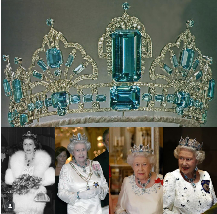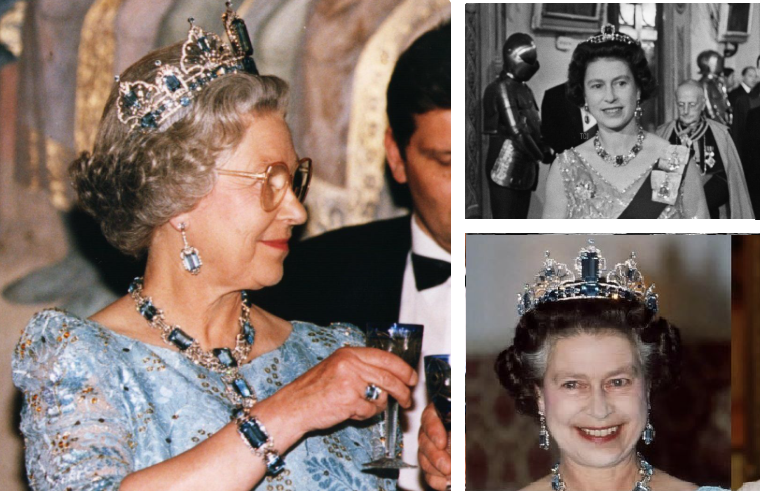 Especialistas em joalheria real costumam destacar que Elizabeth II tinha uma predileção por este conjunto por dois motivos principais: O azul das águas-marinhas brasileiras era considerado perfeito para destacar a cor dos olhos da Rainha.