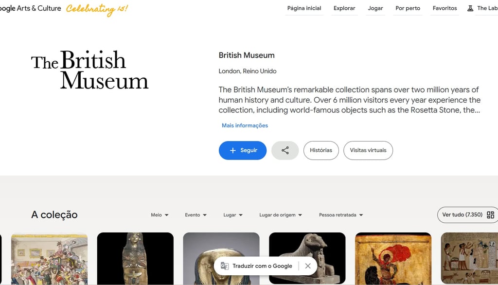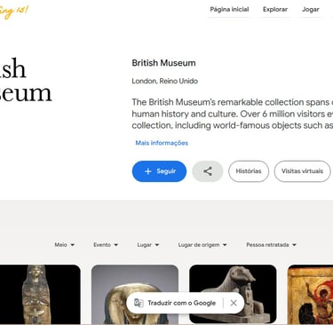 Acesse aqui o British Museum no Google Arts & Culture e conte para nós qual foi a descoberta mais interessante que você fez no tour?